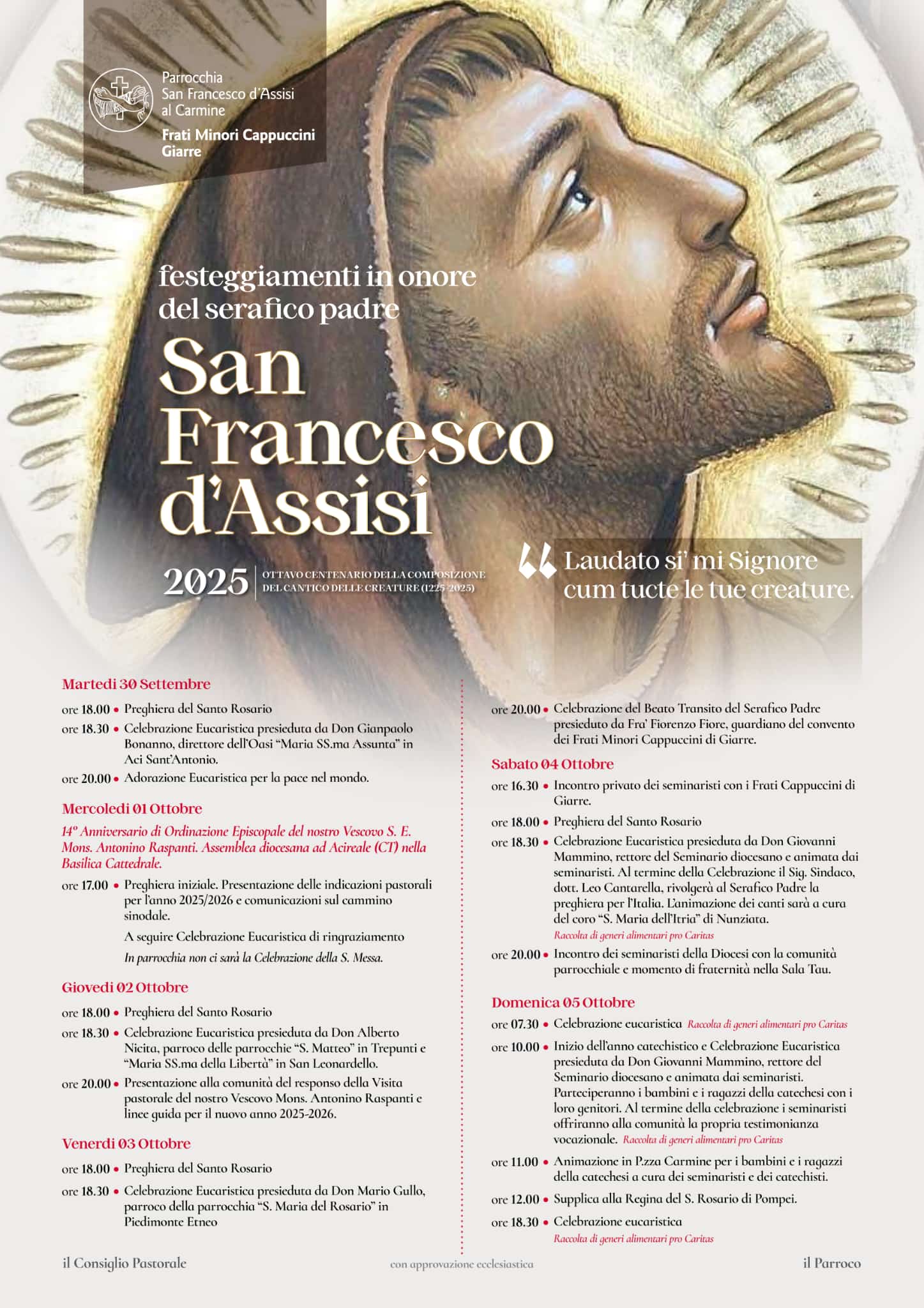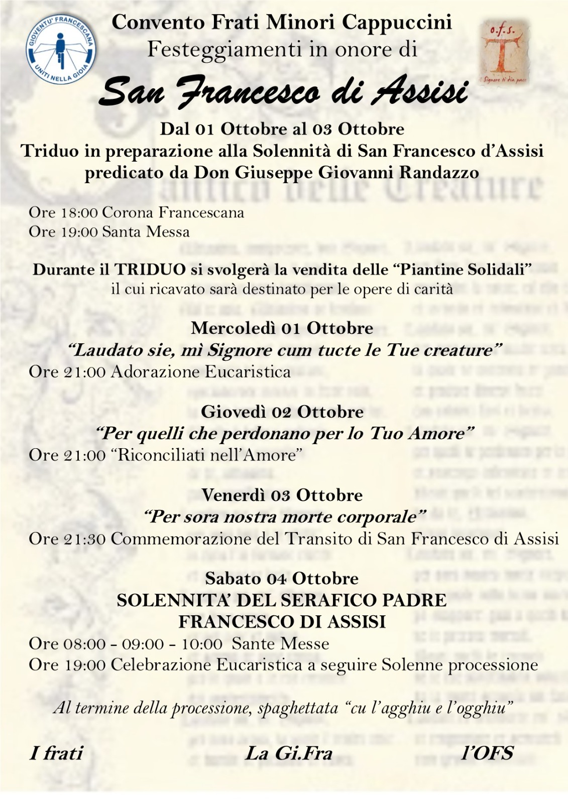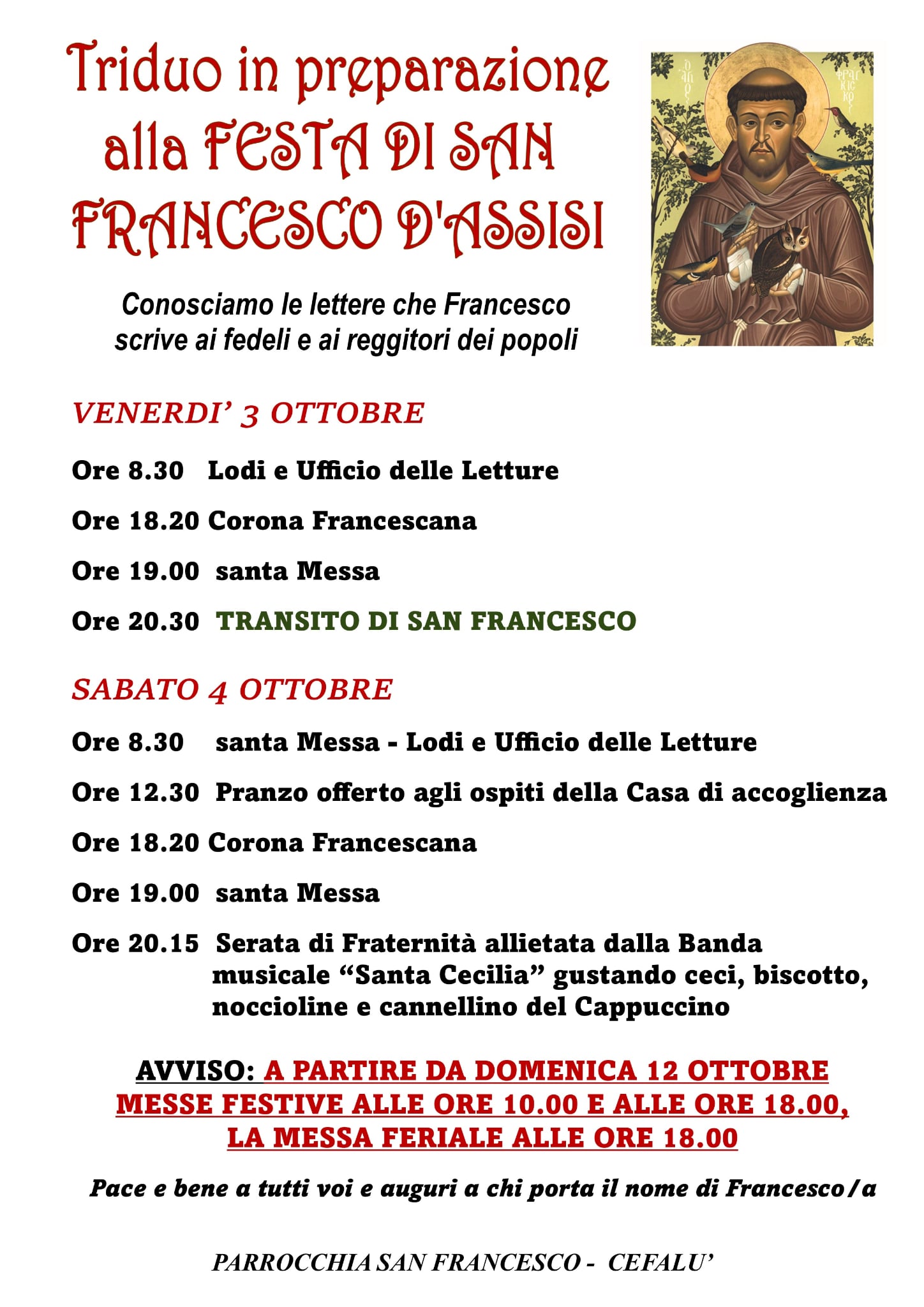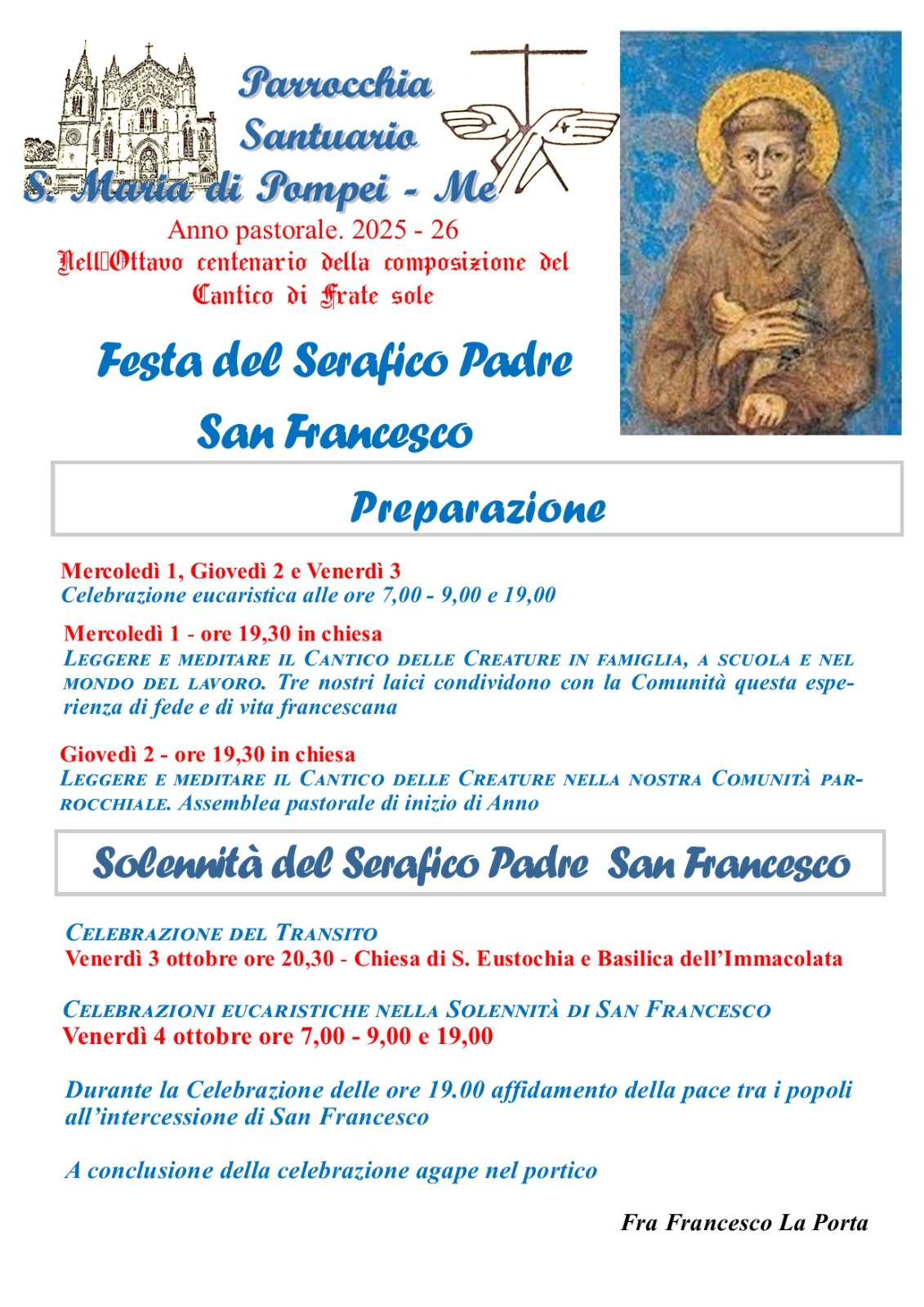 Di seguito i programmi del Triduo e della Festa di San Francesco che verranno celebrarati nei nostri conventi. Trova il luogo a te più vicino, noi frati saremo lieti di accolgierti e condividere con te questi giorni di preghiera, di ascolto e di festa!