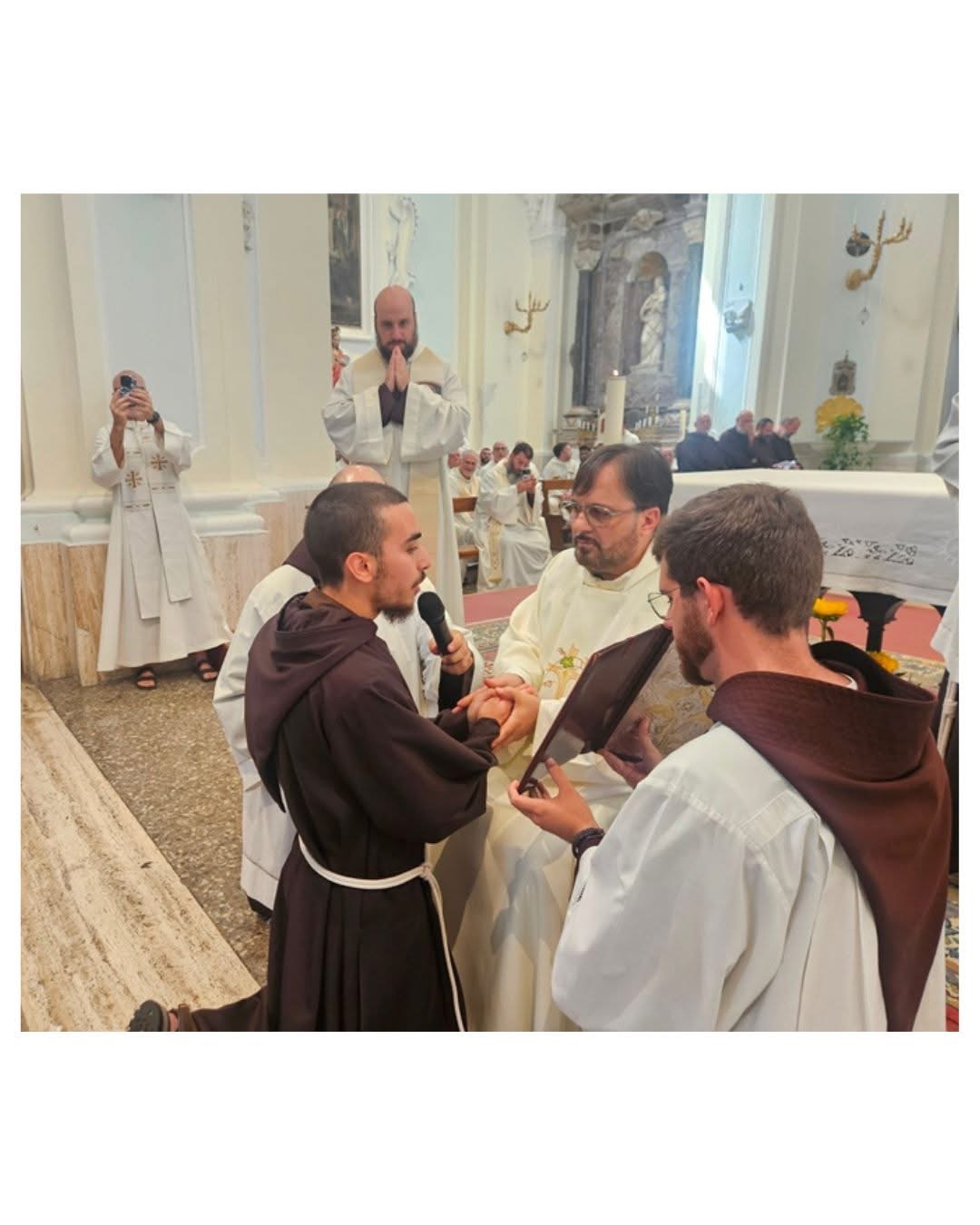 Il rito si è svolto all’interno della Concelebrazione eucaristica presieduta dal ministro provinciale di Calabria, fr. Giovanni Loria. Presenti alla cerimonia i Ministri provinciali delle altre Circoscrizioni del Sud Italia, il Custode del Vicino Oriente, numerosi frati, sacerdoti diocesani, amici e familiari giunti da più parti.
