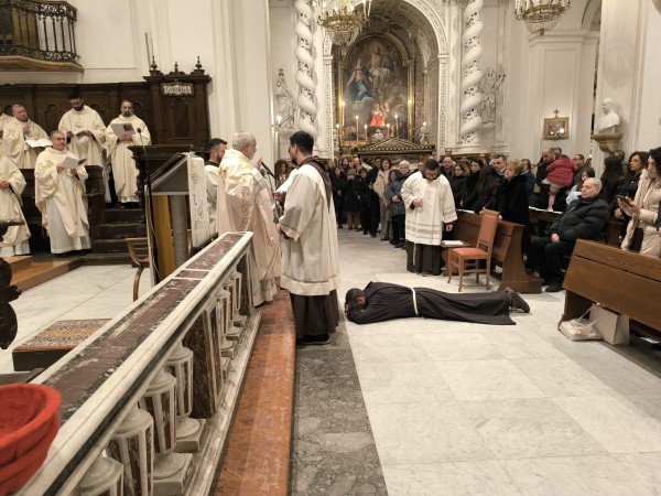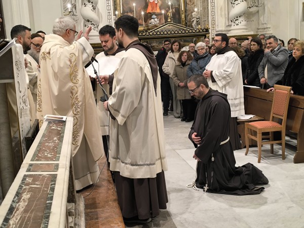 Sabato 24 gennaio 2026, presso la Chiesa Madre San Giovanni Battista di Bisacquino (PA), il nostro fratello fr. Gregorio Enrico Angileri ha emesso la professione perpetua nelle mani del Ministro Provinciale fr. Pietro Giarracca che ha presieduto l'eucarestia. Presenti, oltre ai frati della Provincia religiosa di Sicilia, alcuni frati della Fraternità Interprovinciale della Formazione Iniziale Specifica di Bari, il maestro con alcuni frati del Post-noviziato di Campobasso, la fraternità del postulandato di Siracusa e tanti fedeli di Bisacquino, Burgio e Sciacca. Insieme al nostro fratello abbiamo vissuto un momento forte di fraternità. Tanta gioia nei volti di coloro che hanno accompagnato fr. Gregorio Enrico in questi anni di discernimento e formazione.